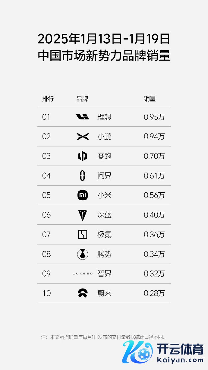 理念念汽车上周销量0.95万辆开yun体育网理念念汽车上周销量0.95万辆