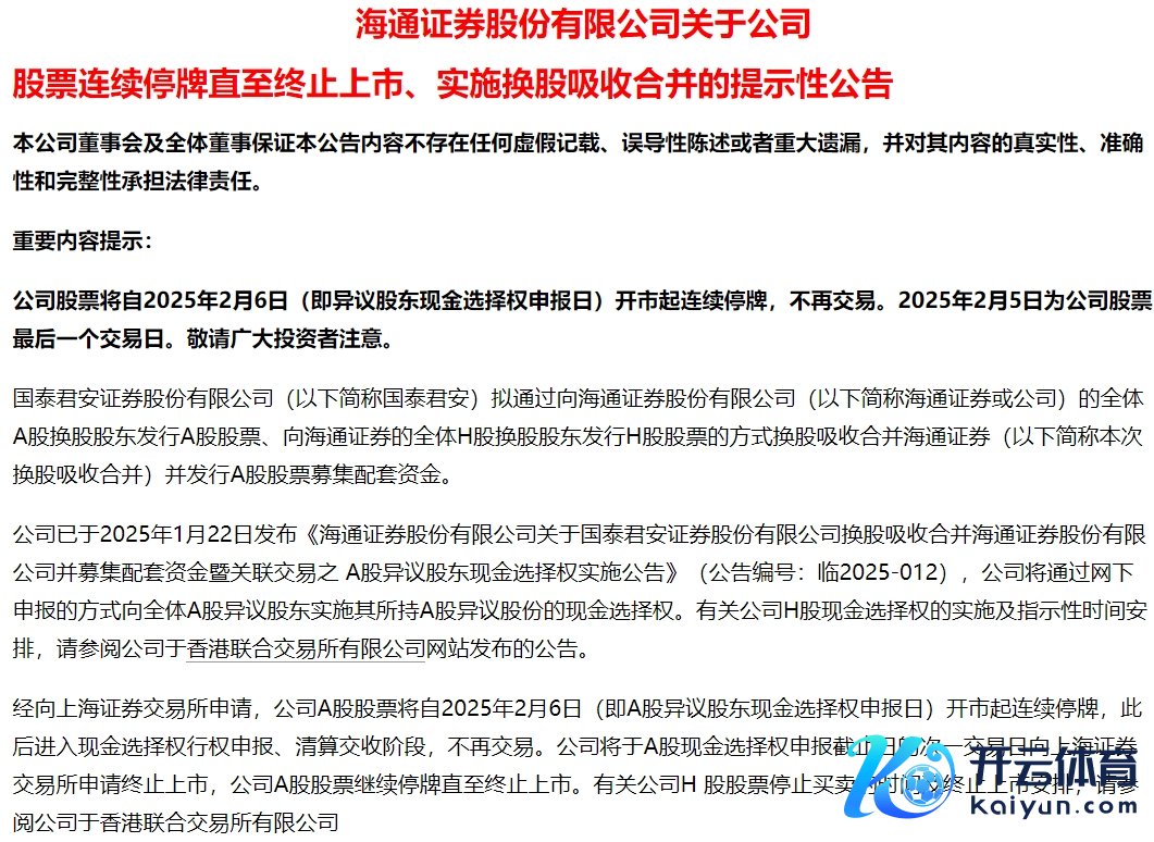 海通证券:2月5日为公司股票终末一个交游日开yun体育网海通证券:2月5日为公司股票终末一个交游日