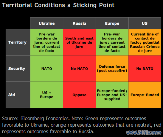 和平条约的达成仍靠近无边闭塞,其中最迫切的是版图问题。峰会前,莫斯科辨别作念出任何退步,坚执要求为止其并未扫数占领的版图,而基辅则线路景况围绕面前阵线进行谈判。